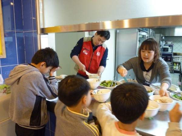 새싹비빔밥을 제공해주었어요. 단순히 봉사하는 것이 아니라 아이들을 한명한명