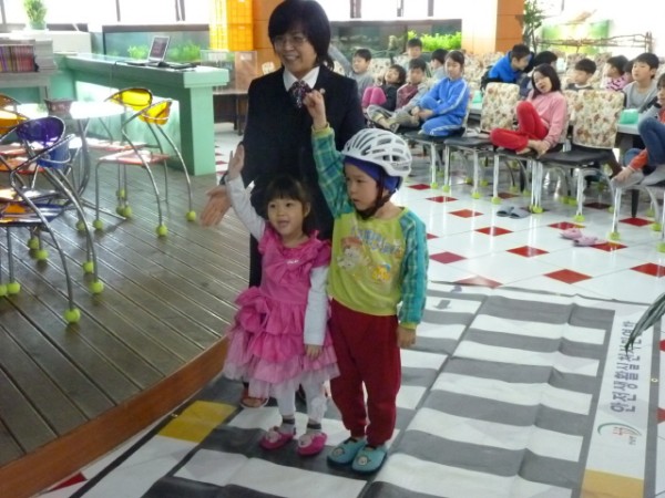 이론교육 받은 것을 실천해보았어요. 실제 횡단보도와 비슷하여 아이들의 참여도와 호응이 좋았습니다.