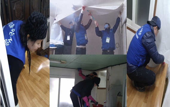 취약계층 대상으로 수리할 여력이 없는 노인가구 및 장애인가구를 선정해 방한벽지 설치, 도배 및 장판 시공, 전기배선, 집 주변 환경정비 등 총 30가구의 집수리를 완료했습니다.