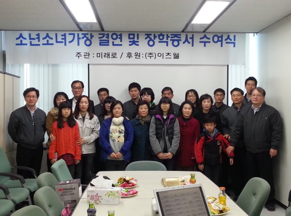 지난 24일 (주)이츠웰 미래로 봉사단의 결연 및 장학증서 수여식이 있었습니다.