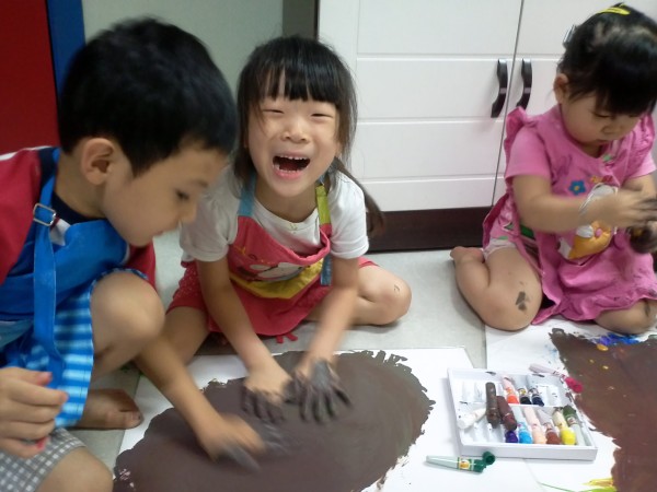 오랜만에 물감놀이에 푹빠진 아이들의 천진난만한 모습에 힘이들어도 웃음이 절로난다.