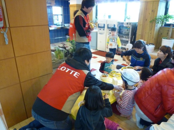 롯데마트 직원분들이 해피홈에 방문하여 아이들 생활관 및 식당 청소와 맛있는