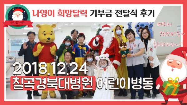 캠페인의 기부금 전달식이 지난 12월 24일 칠곡경북대학교 어린이 병원 5동 소아처장실에서 진행되었습니다.