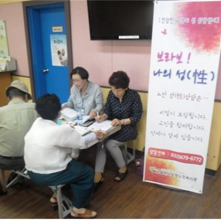 지역 노인들의 건강한 성문화 정립 위해 노력 중 관내 공원에서 상담부스, 거리홍보 운영