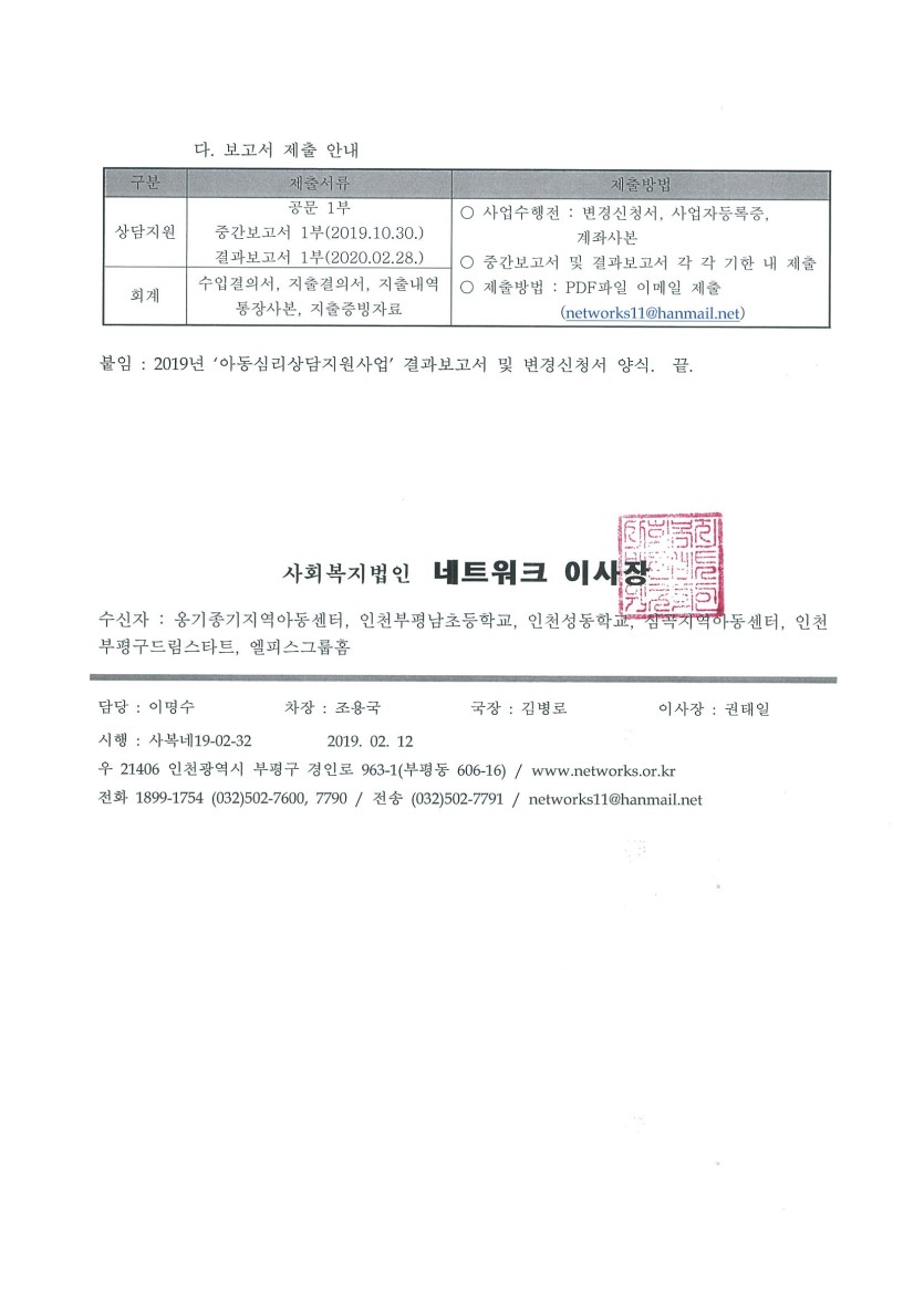 안내 2019년 아동심리상담지원사업 신청 결과 안내